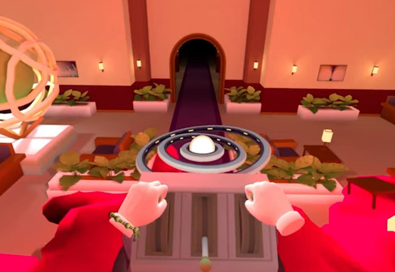 The core genius of Hotel Infinity is its commitment to room-scale first design. The entire game is built around the player having a small, 2×2 meter (or roughly 6.5 x 6.5 foot) playspace. Within this tiny area, the game uses non-Euclidean geometry—like portals, revolving doors, and impossibly winding hallways—to create the illusion of an enormous, sprawling hotel.