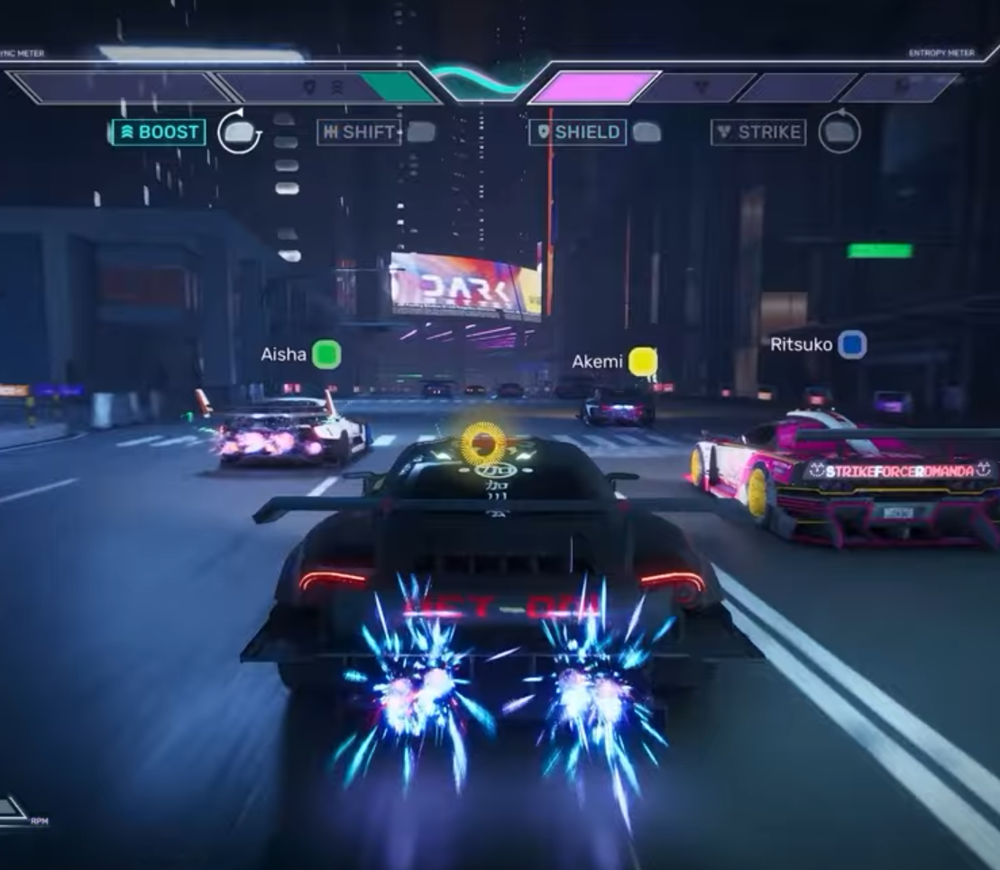 - Sync: Earned through “Active Shifts” (perfectly timed manual gear changes), Sync can be spent on high-speed Boosts or defensive Shields.